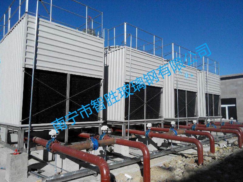 閉式冷卻塔從工藝設備里流出來的高溫度介質,經過冷卻塔的循環泵加壓輸送到閉式冷卻塔的冷卻盤管當中,并且在盤管當中流動。利用水泵將閉式冷卻塔水箱當中的加壓抽到噴淋裝置當中,均勻的噴灑在冷凝盤管的外表面上,冷凝盤管表層的水迅速的吸收冷凝盤管傳遞出來的熱量,汽化蒸發,降低噴管內冷卻介質的溫度。在冷卻塔的頂部設計了風機,風機快速轉動,帶動他體內部的氣流流動,加快了熱量的散發。為了防止大量的水分子流動而造成冷