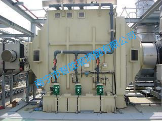 設(shè)計(jì)壓力:0.002kg/cm2,設(shè)計(jì)溫度:70℃由于工作介質(zhì)腐蝕性很強(qiáng),一般填料及一般工藝制作的玻璃鋼是達(dá)不到要求的,為此我廠制造的玻璃鋼洗滌塔,其耐腐層、增強(qiáng)層、防老化層均采用了特殊工藝、特殊材料的耐腐蝕玻璃鋼制作。該塔為圓型分段、分片組裝形式,分為上塔體、中塔體、下塔體、環(huán)形管噴淋裝置。填料選用鮑爾填料,具有很好的表面新氣液接觸,使用效果良好。