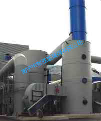 設計壓力:0.002kg/cm2,設計溫度:70℃由于工作介質腐蝕性很強,一般填料及一般工藝制作的玻璃鋼是達不到要求的,為此我廠制造的玻璃鋼洗滌塔,其耐腐層、增強層、防老化層均采用了特殊工藝、特殊材料的耐腐蝕玻璃鋼制作。該塔為圓型分段、分片組裝形式,分為上塔體、中塔體、下塔體、環形管噴淋裝置。填料選用鮑爾填料,具有很好的表面新氣液接觸,使用效果良好。