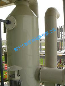 玻璃鋼洗滌塔是硫酸生產線的主要設備,該塔的主要作用是:由塔底進塔的帶有礦塵、砷、有硒、氟、SO2等雜質和氣體,經填料層由塔頂排出。而稀硫通過塔頂的噴嘴噴淋,使之填料層中氣液充分接觸,除去雜質,達到凈化氣體的目的。
