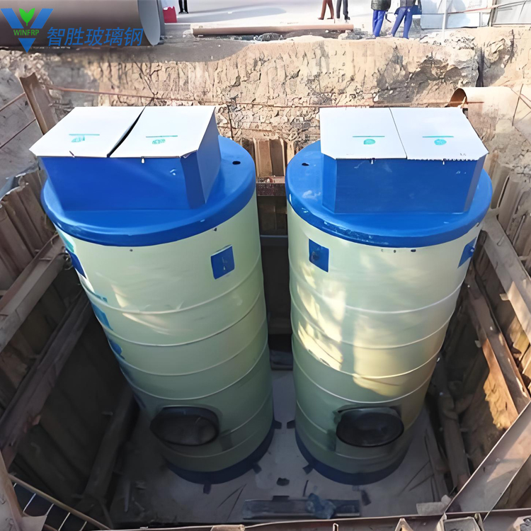 玻璃鋼一體化預制泵站包括纖維纏繞玻璃鋼筒體、(預旋轉)底座、潛污泵、自動耦合裝置、導桿、提升鏈、不銹鋼管路、止回閥、閘閥、可提升安全格柵、二次工作平臺,多重液位檢查設備,全自動無人值守控制系統等。 一體化泵站具有安裝空間小,建設周期短,工程造價低,維修、管理相對便捷等優點,在:1、市政排水,2、建筑排水,3、鐵路、公路排水,4、雨洪應急排水等方面廣泛應用。 玻璃鋼一體化預制泵站