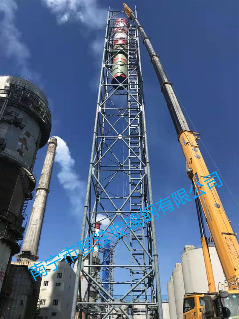2、外套鋼結(jié)構(gòu)玻璃鋼煙囪形式