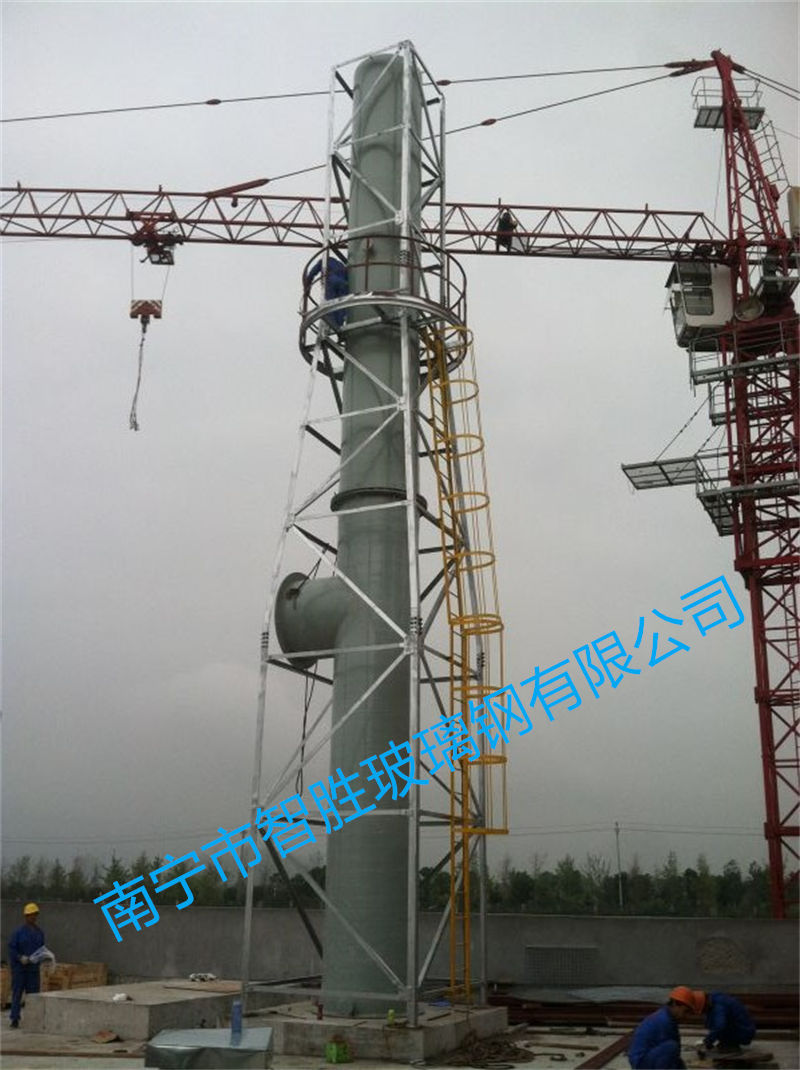 (3)、同步進(jìn)行玻璃鋼煙囪的分段吊裝和固定