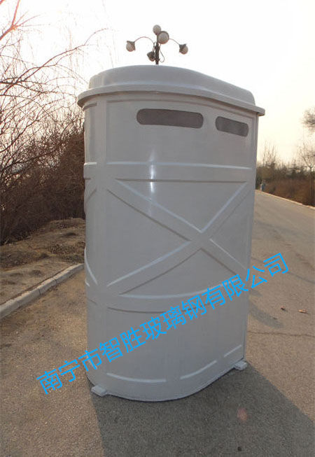 玻璃鋼移動廁所是以彩色強化玻璃鋼為主體結構,達到堅固耐用、美觀大方、并且不生銹、不腐蝕、墻板二面光滑、易保潔、符合衛生要求、重量輕以及可隨意設置移動到位等特點。玻璃鋼移動廁所主要由底座、墻板、屋蓋、門板和便器五大部分組成。底座內腔設有儲便槽,并在背面設有抽糞口和排污口。 玻璃鋼移動廁所內部設施簡潔實用,設有一個蹬式便器,由水閥沖洗便器,便槽底部空間供儲存糞便;便器經過我們反復實驗、